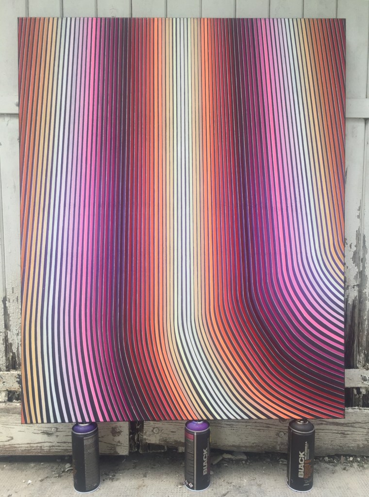 Technique mixte, aérosol et peinture acrylique sur toile.